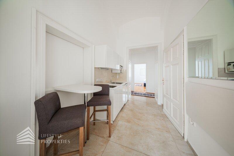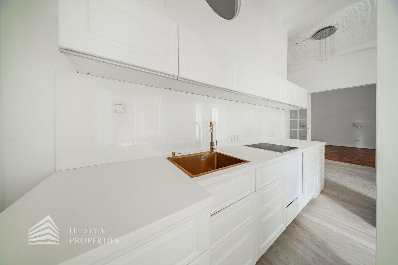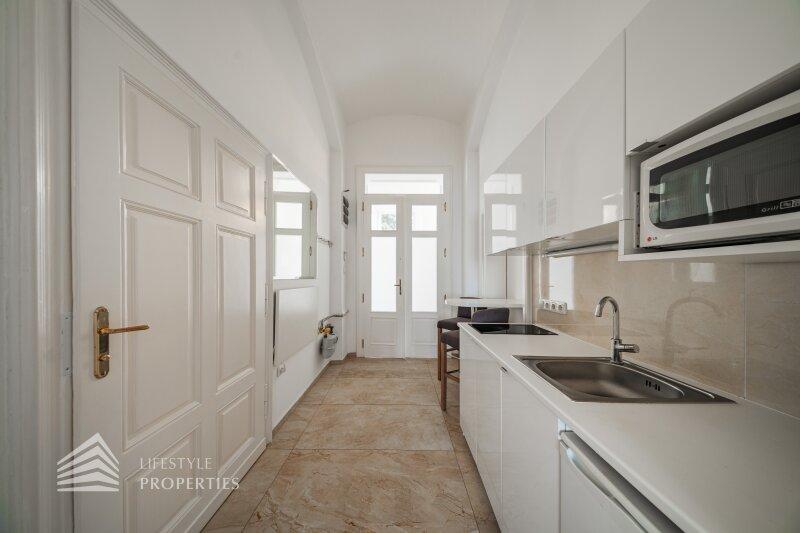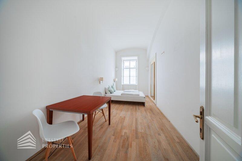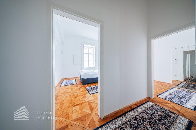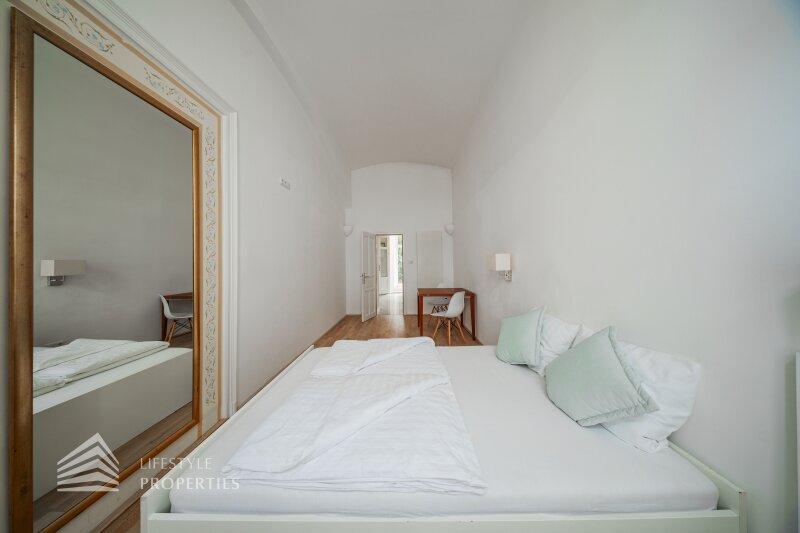 Die Wohnung wurde im Zuge einer umfassenden Kernsanierung in den Jahren 2016 bis 2018 behutsam revitalisiert. Stilelemente wie hohe Gewölbedecken, originale Flügeltüren, Eichenparkettböden und sorgfältig ausgewählte Keramikfliesen verleihen dem Objekt eine zeitlose Eleganz. Dank intelligenter Raumaufteilung eignet sich das Apartment sowohl für Familien als auch für jene, die Wohnen und Vermieten geschickt kombinieren möchten.