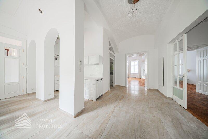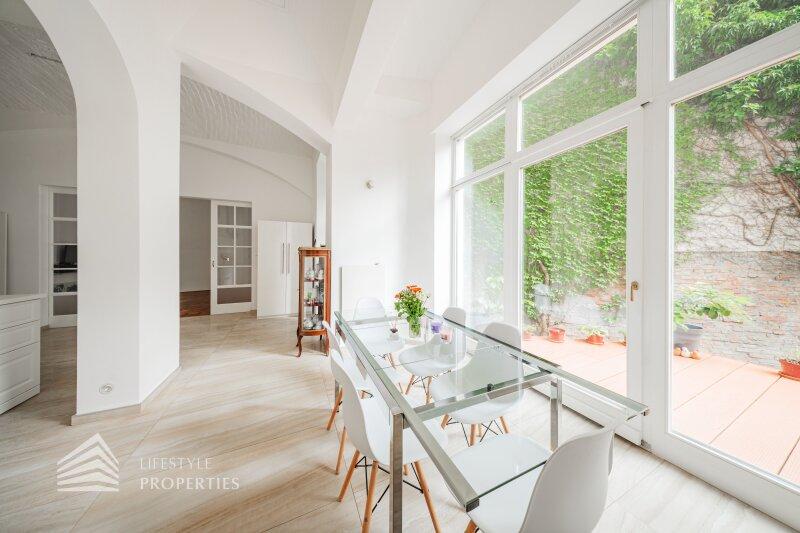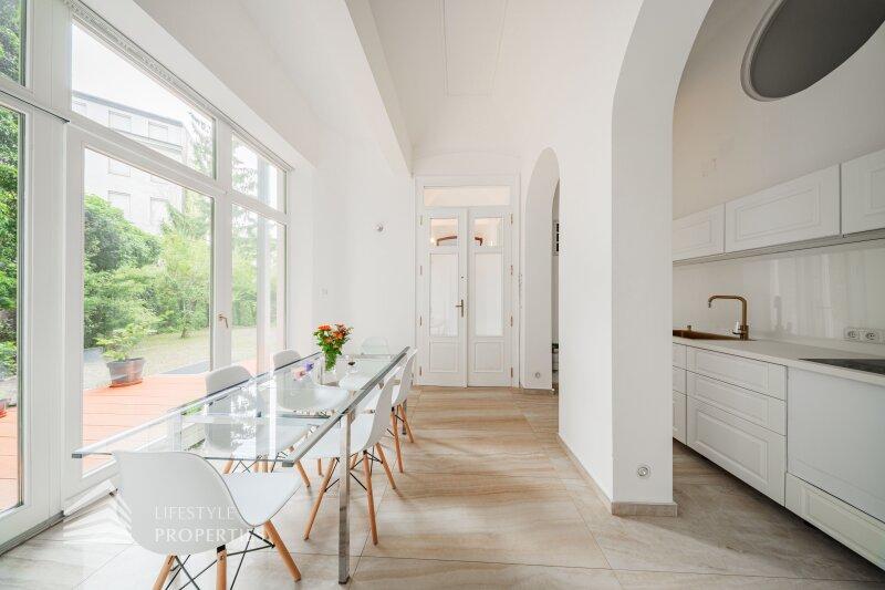 Willkommen in einer außergewöhnlichen Gartenwohnung in einem prachtvollen Neorenaissance-Stilaltbau im begehrten 8. Wiener Gemeindebezirk. Dieses exklusive Objekt vereint auf rund 180 m² Wohnfläche historischen Charme mit modernstem Wohnkomfort und bietet dazu einen privaten, über 130 m² großen Garten ein wahres Juwel in zentraler Innenstadtlage.