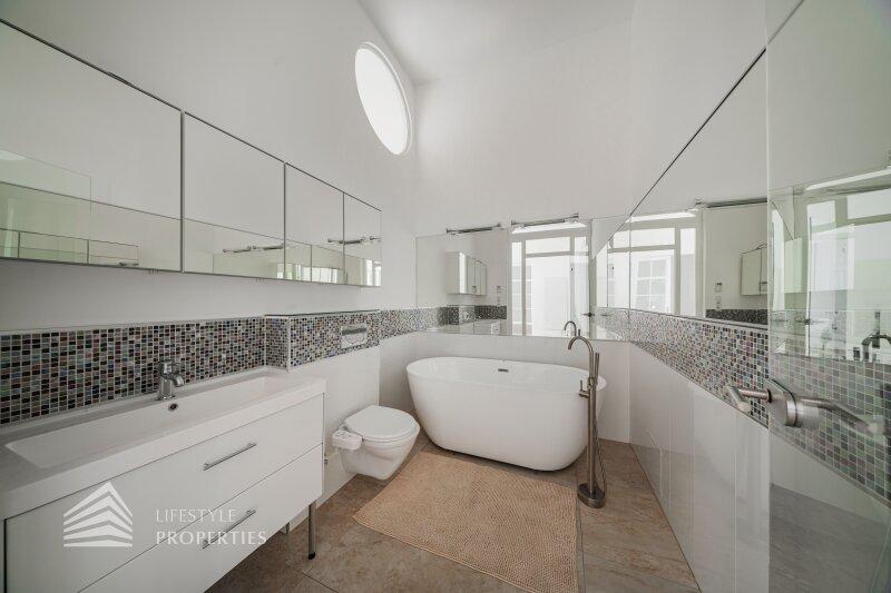 Diese großzügige Einheit wurde ursprünglich für den Eigenbedarf konzipiert und überzeugt durch ein offenes Wohnkonzept mit Wohnküche und repräsentativem Essbereich. Zwei helle Zimmer (35 m² und 25 m²) Zwei helle Zimmer (35 m² und 25 m²) mit