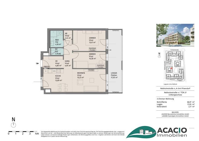 Diese schöne Mietwohnung mit perfektem Grundriss befindet sich im 3. Obergeschoß mit ca.68,97m² Wohnfläche und verfügt über eine großzügige Loggia, die durch ihren Ausblick auf eine herrlich angelegte Grünanlage besticht.