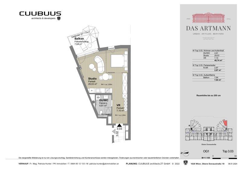 - In den Regelgeschoßen befinden sich Wohnungen mit Größen von 40m² bis 130m²