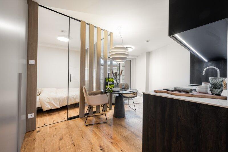 Die Wohnungsgrundrisse im Dachgeschoss eigenen sich für Singles ebenso wie für Familien. Nebst der hochwertigen Ausstattung genießen die zukünftigen Bewohner:innen in den meisten Fällen wunderbare Terrassen mit einem traumhaften Blick Richtung Donaukanal und Innenstadt.