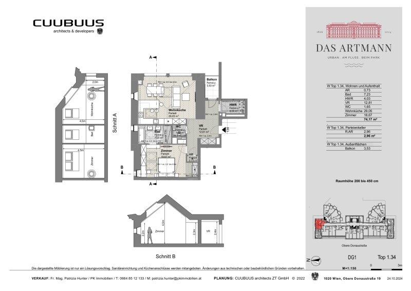 Die Wohnungsgrundrisse im Dachgeschoss eigenen sich für Singles ebenso wie für Familien. Nebst der hochwertigen Ausstattung genießen die zukünftigen Bewohner:innen in den meisten Fällen wunderbare Terrassen mit einem traumhaften Blick Richtung Donaukanal und Innenstadt.