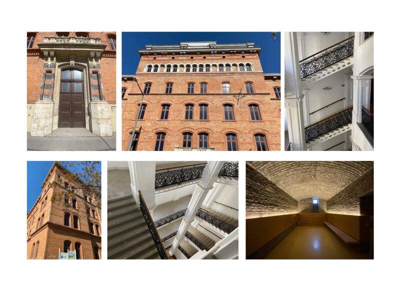 Industrial trifft Wiener Gründerzeit. Das 1866 durch Ferdinand Artmann errichtete imposante Backsteingebäude (die Fassade und das Stiegenhaus stehen unter Denkmalschutz) sowie der später entstandene hofseitige Zubau wurden bis 2025 aufwendigst revitalisiert.