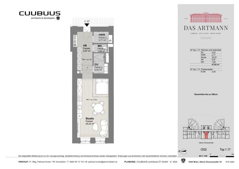 Die Wohnungsgrundrisse im Dachgeschoss eigenen sich für Singles ebenso wie für Familien. Nebst der hochwertigen Ausstattung genießen die zukünftigen Bewohner:innen in den meisten Fällen wunderbare Terrassen mit einem traumhaften Blick Richtung Donaukanal und Innenstadt.