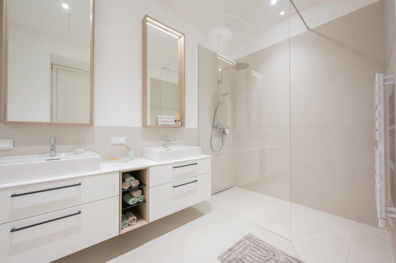 - hochwertiges Feinsteinzeug und Sanitärausstattung