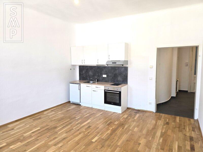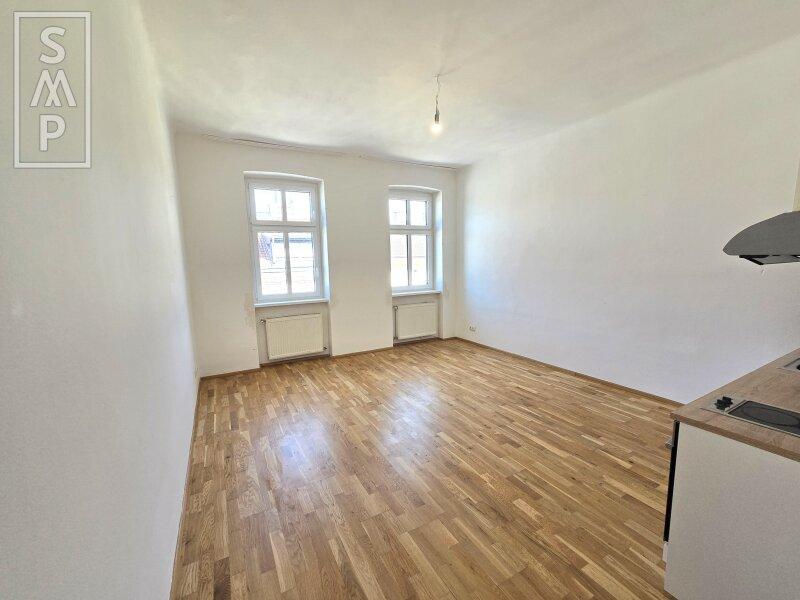 Die Raumaufteilung ist smart geplant, dass jeder Quadratmeter optimal genutzt wird. Im Vorzimmer finden Sie bereits den praktischen Anschluss für Ihre Waschmaschine und das Badezimmer Dusche und WC, während sich im offenen Wohnzimmer die voll ausgestattete Küche befindet.