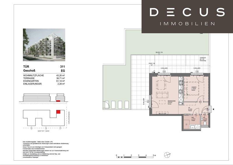 Top 311 befindet sich im Erdgeschoß, ist südwestlich ausgerichtet und teilt sich wie folgt auf: