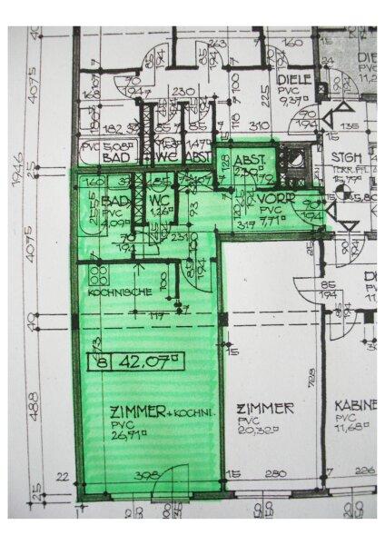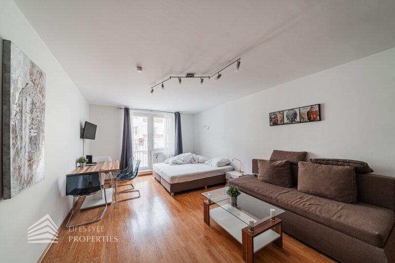 Die Wohnung liegt im 2. Liftstock eines Neubaus aus dem Jahr 1979 und erstreckt sich über ca. 42 m², bestehend aus einem Wohn-/Schlafraum mit Küchenzeile, einem Vorzimmer, einem Abstellraum, einem Badezimmer sowie einer separaten Toilette. Der Hauptraum verfügt über schönen Laminatboden, in den restlichen Bereichen sind Fliesen verlegt. Die Immobilie wird mittels Gaszentralheizung beheizt, die Kosten für Heizung und Warmwasser betragen aktuell EUR 77,60 zzgl. USt. pro Monat. Die Wohnung wird mit allen auf den Fotos ersichtlichen Möbeln verkauft.