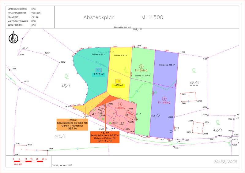 Die Zufahrt erfolgt über eine Servitutsfläche von 210 m² am Grundstück Nr. 1b.