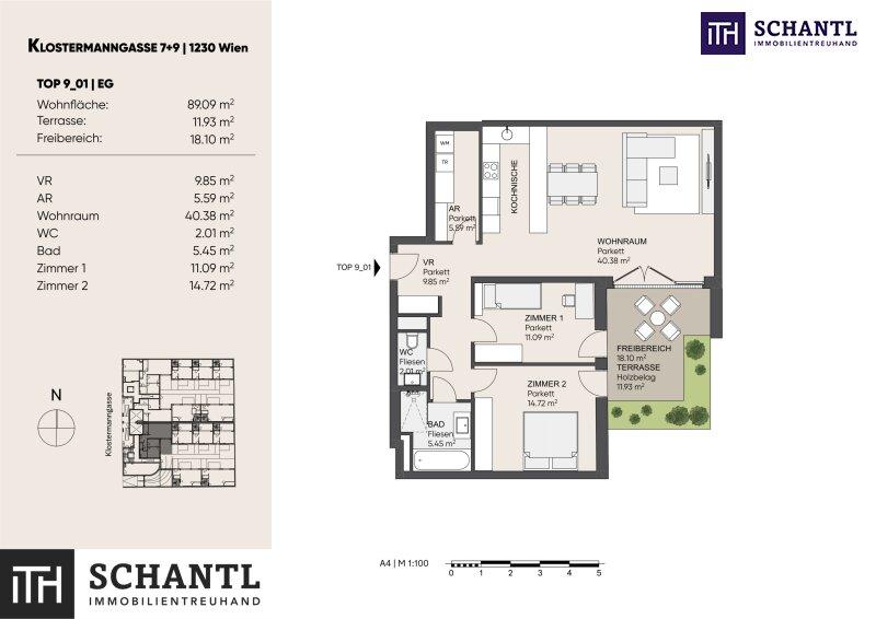 Absolute Ruhelage mit Terrasse im Innenhof! Innovative Erdwärme + Perfekt aufgeteilte 3 Zimmer + Hochwertige Ausführung + Tiefgarage + Nachhaltig investiert! Jetzt zugreifen! - Objektnr. 5579202