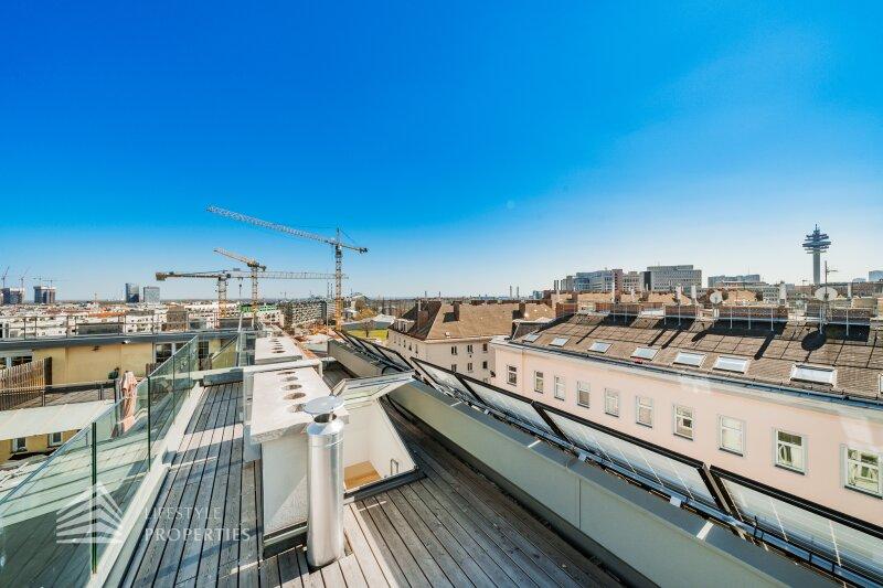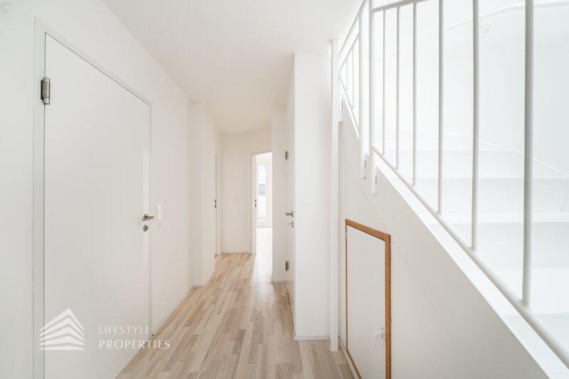 Die Wohnfläche dieses Objekts erstreckt sich über zwei Etagen, auf einer Fläche von ca. 97,06 m² und teilt sich wie folgt auf: Vorraum, Wohnzimmer, drei Zimmer, Küche mit Essplatz, Badezimmer, Toilette, Abstellraum. Das Highlight der Immobilie sind zweifelsohne die Terrasse und das Flachdach. Von dort aus genießen Sie einen traumhaften Blick über die Dächer Wiens.