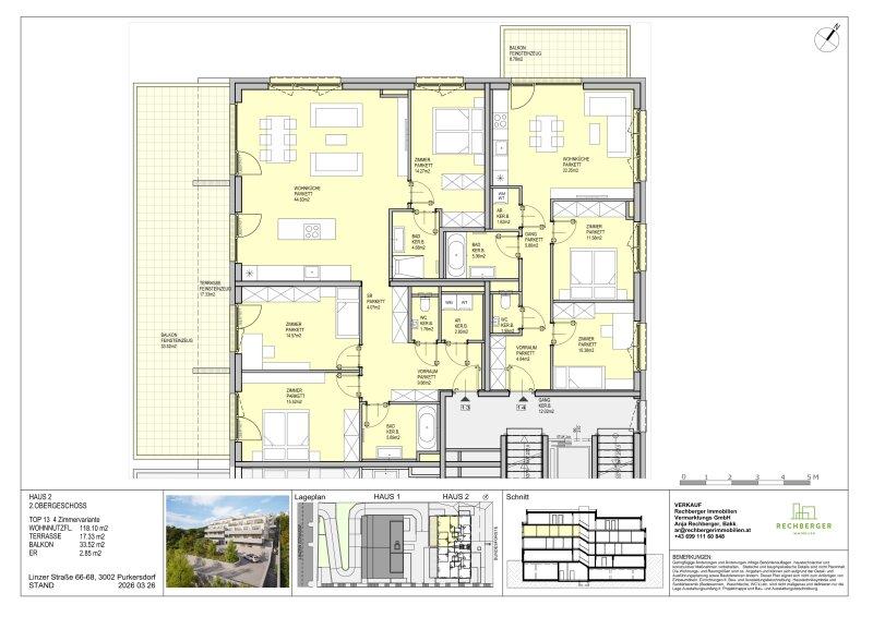 Am sonnigen Eichberg in Purkersdorf entsteht ein Ort zum Wohlfühlen mit Weitblick ins Grüne und viel Raum zum Leben. Zwei charmante Wohnhäuser mit insgesamt 30 Wohnungen bieten eine Vielfalt an Möglichkeiten: von 2-Zimmer-Einheiten bis hin zu Wohnungen mit 6 Zimmern. Hier ist Platz für Lebensentwürfe jeder Art vom ersten Zuhause bis zum Rückzugsort im Ruhestand.