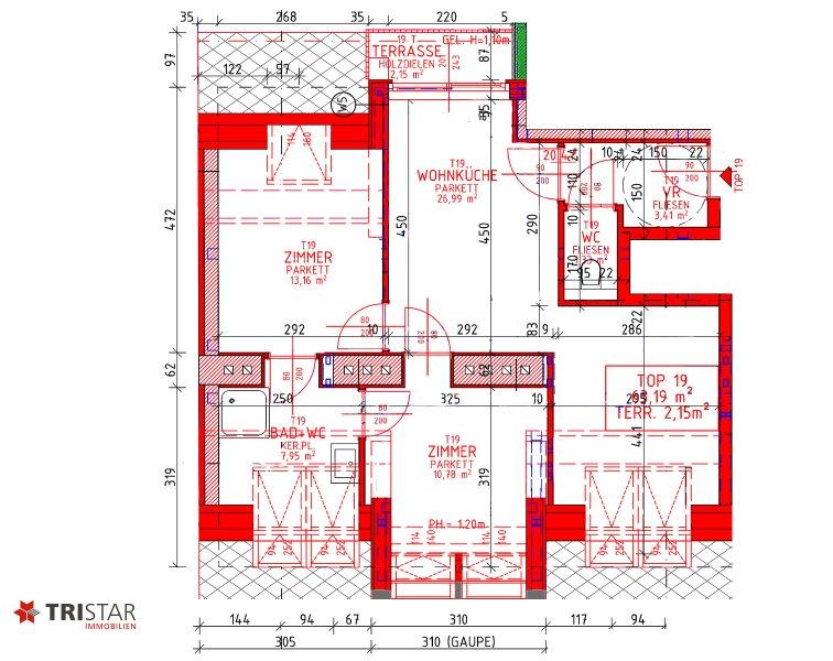 DG 19 3 Zimmer | ca. 63,19 m² WNFL + Terrasse ca. 2,15 m² | EUR 549.000
