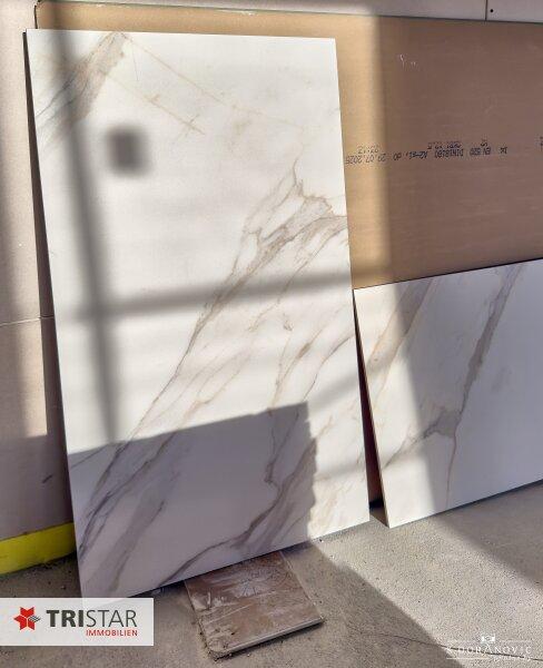 - Bodenbeläge in Fluren und Küchenbereichen hochwertiges italienisches Feinsteinzeug, in Wohn- und Schlafräumen Echtholzparkett