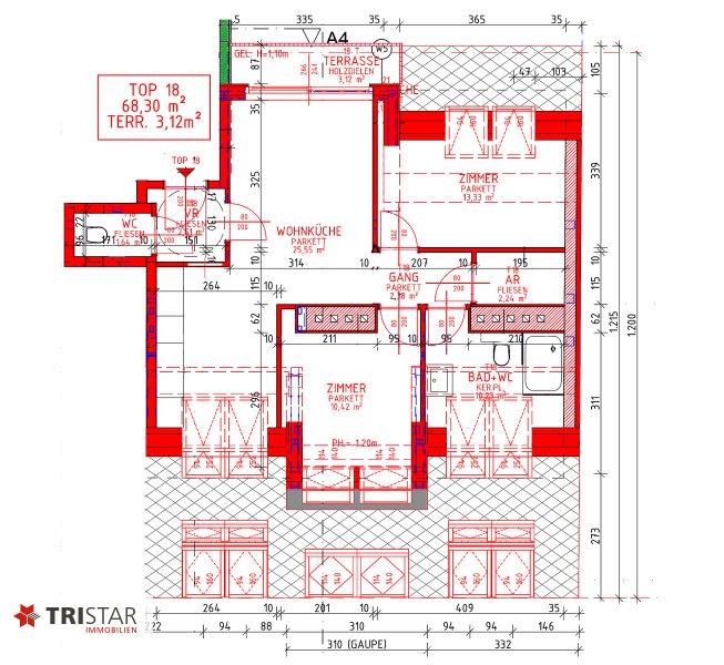 DG 18 3 Zimmer | ca. 68,30 m² WNFL + Terrasse ca. 3,12 m² | EUR 599.000