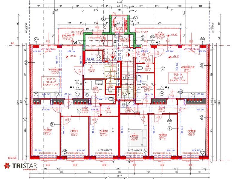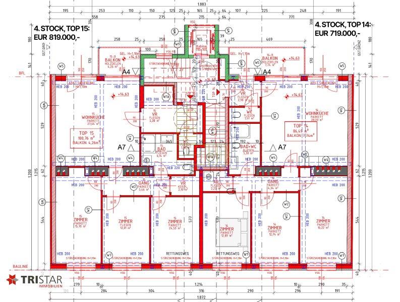 Top 15 4 Zimmer | ca. 101 m² WNFL + Balkon ca. 4,50 m² | EUR 819.000