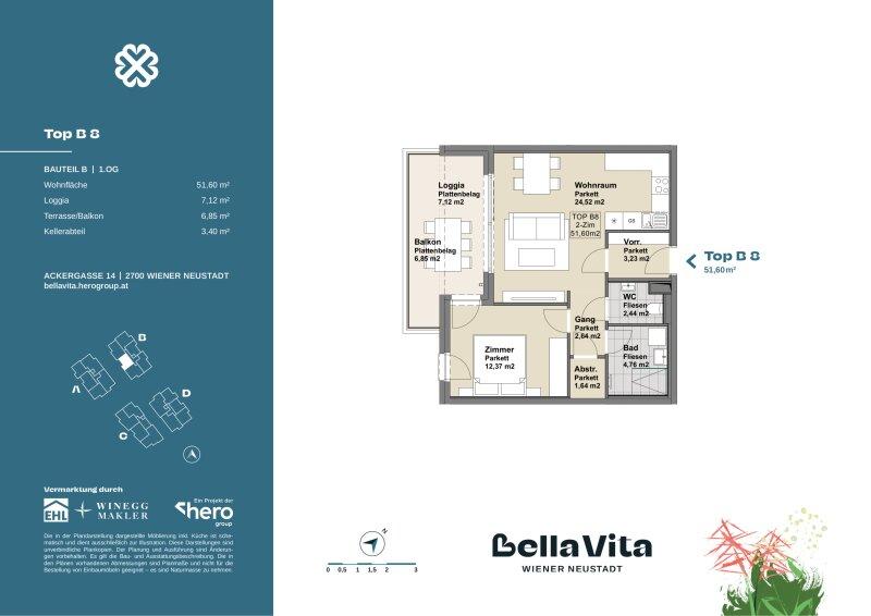 Das Wohnbauprojekt Bella Vita nahe des verzaubernden Wiener Neustädter Kanals steht für "schönes Leben" und das wird hier möglich. Im mediterranen Stil die Außen- und Allgemeinflächen: Gepflasterte Wege in Muschelkalk, Lauben und Schaukeln vermitteln Leichtigkeit, Gemütlichkeit und Wohlgefühl. Im Inneren überzeugende Raumaufteilung, stimmige Architektur, hochwertige Ausgestaltung. Und die Nachhaltigkeit stets im Blick, u.a. durch PV-Anlagen zur Energiegewinnung und einem Dachgeschoß in Holzhybridbauweise.