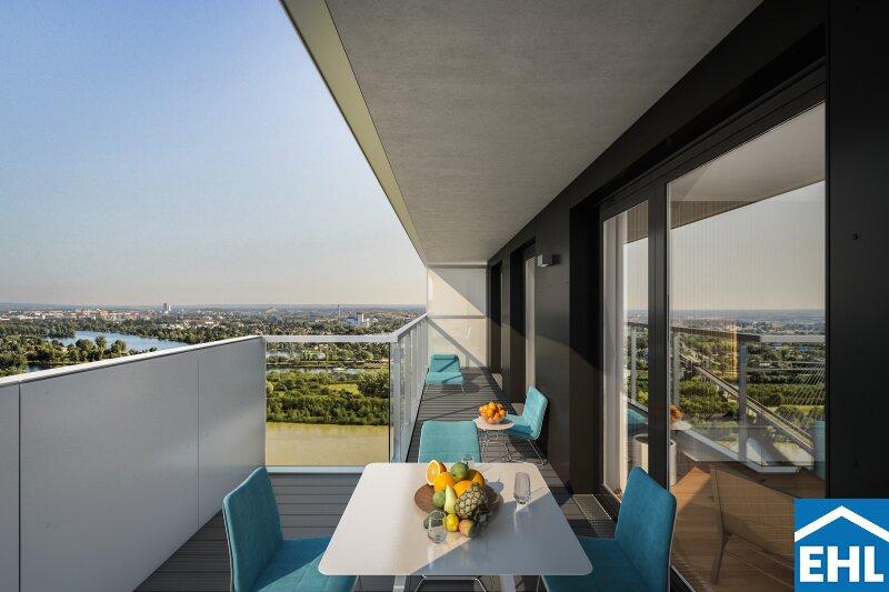 Das einzigartige Wohnbauprojekt besteht aus zwei Gebäudeteilen - dem High Rise und dem Low Rise. Insgesamt verteilen sich rund 500 hochwertig bis luxuriös ausgestattete Wohneinheiten mit unterschiedlichen Größen von 45 bis 305 m² auf die beiden Gebäudekörper und beeindrucken mit einem unverbaubaren Blick über die Donau aus allen 41 Stockwerken.