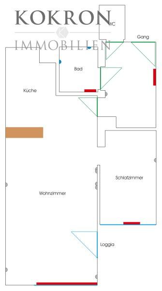 Wir bieten hier eine perfekte Singlewohnung mit rund 44m² Wohnfläche, Wohnküche, Mini-Schlafzimmer und Loggia zum Verkauf.
