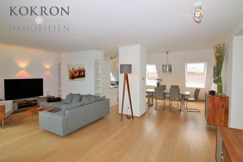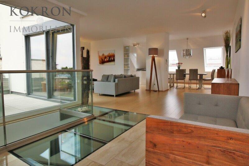 Das repräsentative, moderne und auf Wunsch vollmöblierte Penthouse bietet auf 2 Ebenen 184m² Wohnfläche mit 3 Schlafzimmern, einem fast 70m2 großen Wohn-Essbereich, insgesamt 4 WC´s, 1 Duschbad, 1 Bad mit Dusche und Badewanne sowie insgesamt mehr als 100 m² Terrassenflächen.