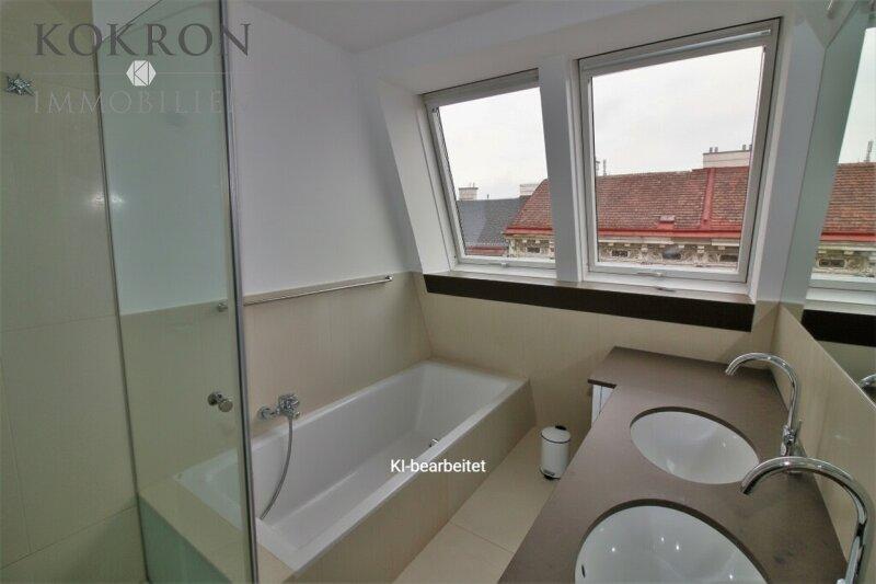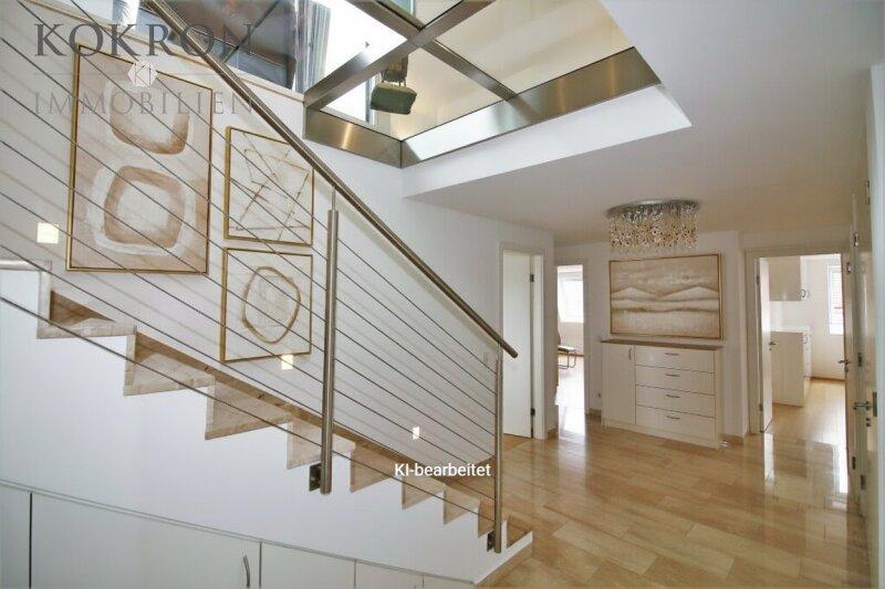 Über einen privaten Liftzugang gelangt man direkt in das 2. DG mit fast 70m² Wohnsalon und einer offenen Marken-Küche. Ebenfalls auf dieser Ebene: eine ein Gäste-WC
