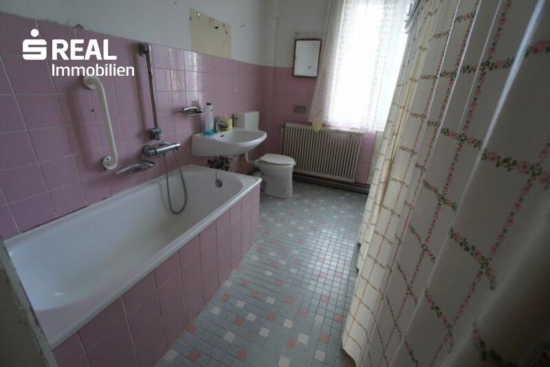 - Badezimmer mit WC, Dusche, Badewanne und Waschmaschinenanschluss
