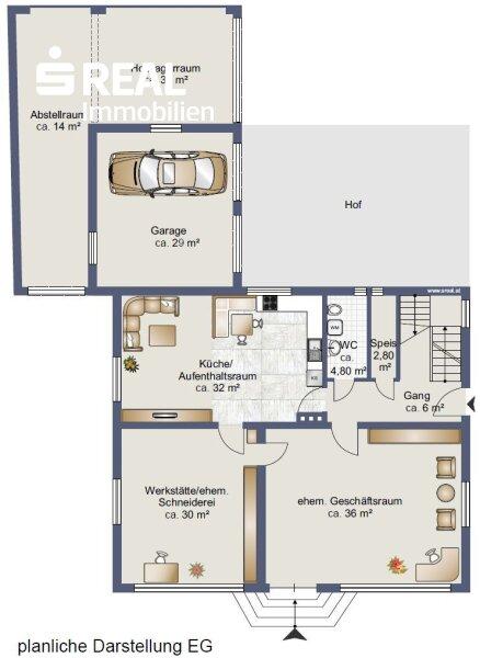 Die Vielzahl an Parkplätzen vor der Liegenschaft und seitlich Richtung Nebengebäude erleichtern Ihnen und Ihren Freunden die Parkplatzsuche. In der vorhandenen Garage können Sie Ihre KFZ Fahrzeuge stets wettergeschützt parken. Auch Tierliebhaber kommen hier ganz auf ihre Kosten, da die Liegenschaft umzäunt ist und Sie somit Ihren vierbeinigen Liebsten genug Raum zur Entfaltung und zum Toben bieten können.