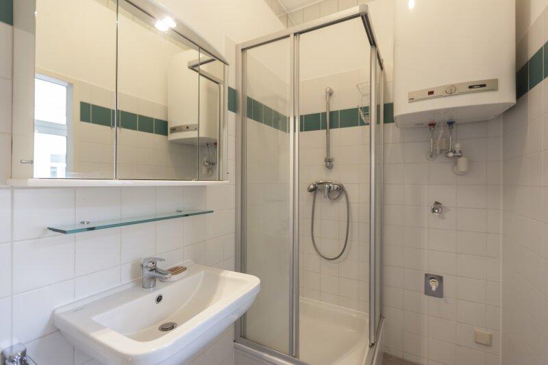 Bad mit Dusche, WC Fenster und Waschmaschinenanschluss,