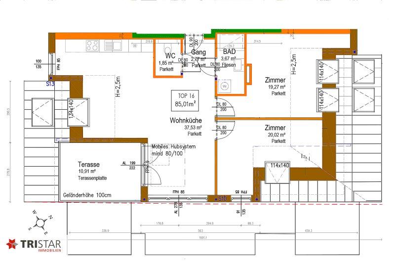 • TOP 16: ca. 85 m² (3 Zimmer) + Terrasse ca. 11 m²,  Kaufpreis: EUR 549.000