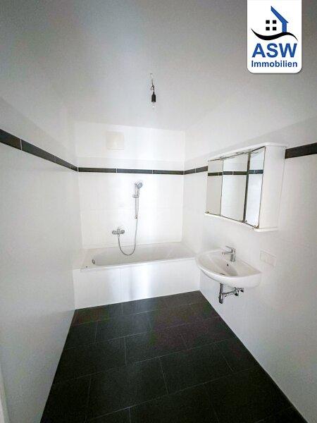 - Badezimmer mit Badewanne und Waschmaschinenanschluss