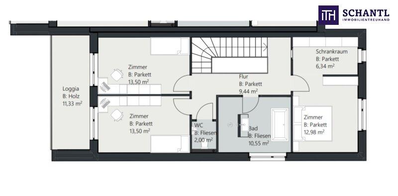 Die dargestellten Bilder mit Bodenbelägen, Küche oder Einrichtungsgegenständen dienen lediglich zur veranschaulichenden Darstellung. Das Haus wird belagsfertig, weiß ausgemalen (ohne Innentüren) übergeben die endgültige Gestaltung der Oberflächen, Böden und des Interieurs obliegt dem Käufer.