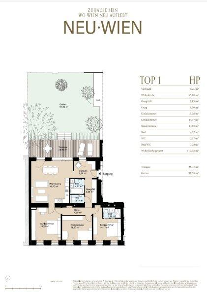 Die Wohnung TOP 1 ist eine Gartenwohnung mit 4 Zimmern, bei der Garten und Terrasse zum ruhigen und nach Süden ausgerichteten Innenhof liegen.