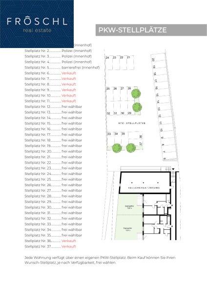 - Einen PKW-Stellplatz im Freien. Preis pro Abstellplatz beträgt € 9.500