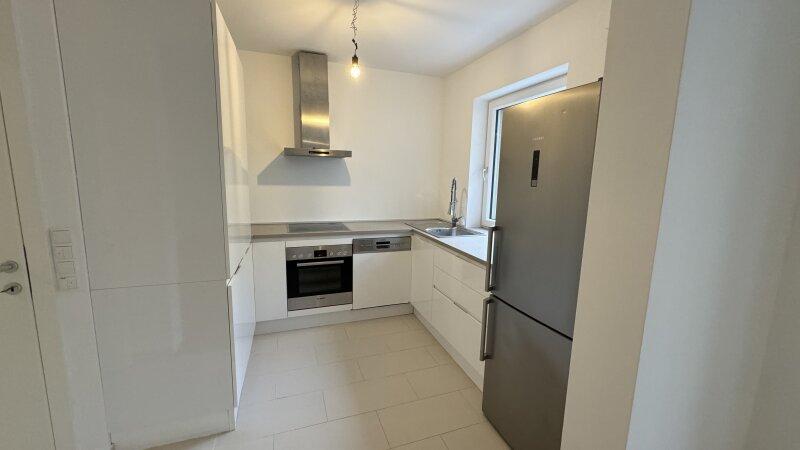 Die vom Wohnraum optisch getrennte Einbauküche präsentiert sich modern und funktional. Hochwertige Geräte von Bosch und Siemens machen das Kochen zum Vergnügen und bieten alles, was ambitionierte Hobbyköche benötigen.