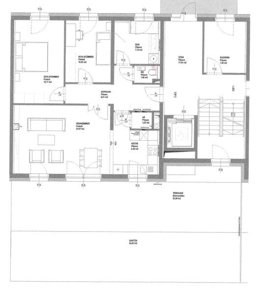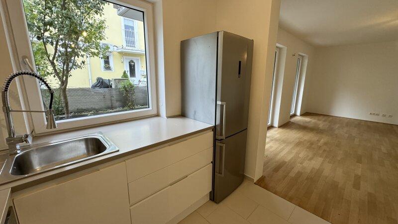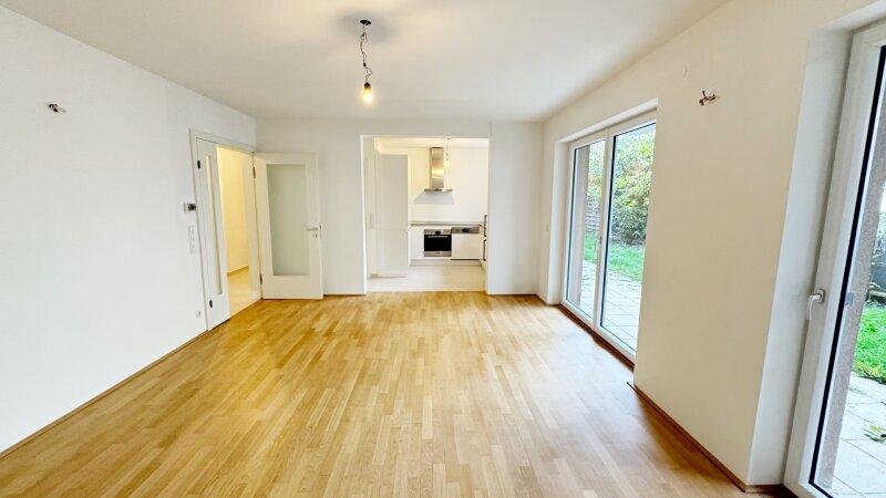 Das Herzstück der Wohnung ist das großzügige, nach Süden ausgerichtete Wohnzimmer. Große Fensterflächen sorgen für ein helles, freundliches Ambiente und führen direkt auf die Terrasse samt privatem Garten ein perfekter Ort für entspannte Stunden im Freien, Grillabende oder eine kleine Gartengestaltung nach eigenen Vorstellungen.