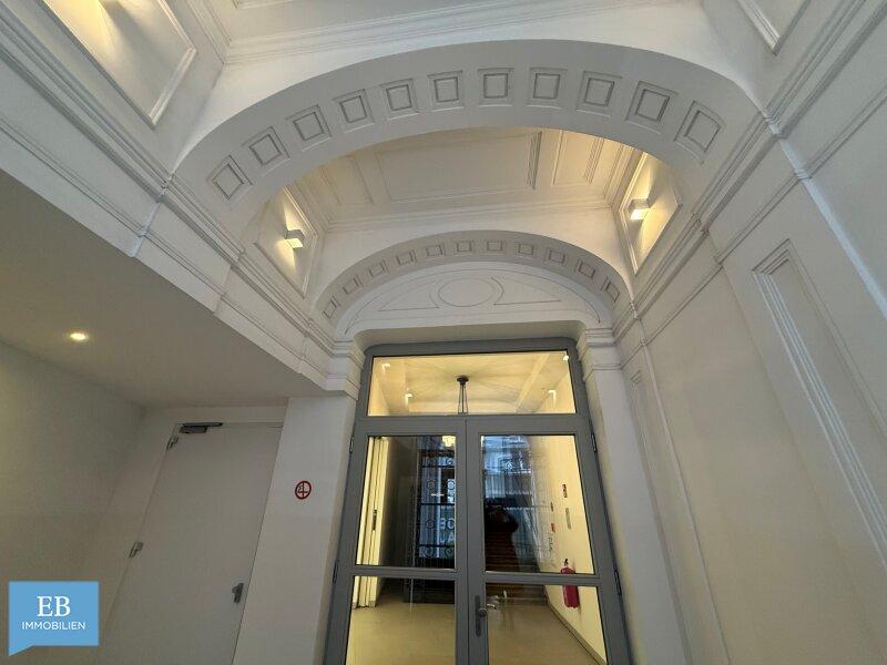 Die unter der historischen Kuppe gelegene Wohnung eröffnet eine außergewöhnliche Chance für stilbewusste Käufer. Nach Jahren der Vermietung steht sie nun bereit für eine anspruchsvolle Neuinterpretation. Bereits im Zuge der Haussanierung wurde die spätere Erweiterung mitgedacht: Die großzügige, geschützte Dachterrasse mit ca. 60 m2 sowie ein separater Abstellraum gehören exklusiv zur Wohnung und sind derzeit über das elegante Stiegenhaus rasch erreichbar.