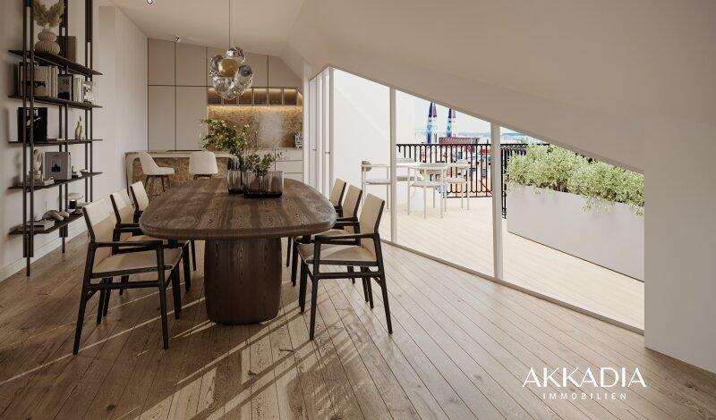 Diese hochwertige Dachgeschosswohnung bietet durch ihre Ost-Süd-West-Ausrichtung Sonne von früh bis spät und schafft damit eine besonders helle und angenehme Wohnatmosphäre. Große Fensterflächen sowie Deckenhöhen von bis zu über drei Metern verleihen den Räumen eine beeindruckende Großzügigkeit und ein offenes Wohngefühl.