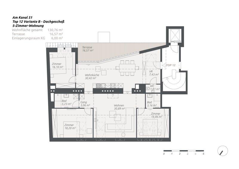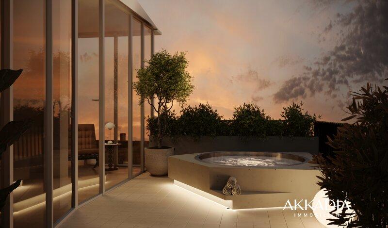 Die Wohnung verfügt über drei Zimmer, wobei der Grundriss noch flexibel an Ihre individuellen Wünsche angepasst werden kann. Eine großzügige Terrasse erweitert den Wohnraum ins Freie und bietet zusätzlichen Lebenskomfort. Hochwertige Dielenböden, edle Fliesen, ein Lift direkt zur Wohnung sowie zwei komfortable Garagenplätze direkt am Haus runden das exklusive Gesamtbild ab.