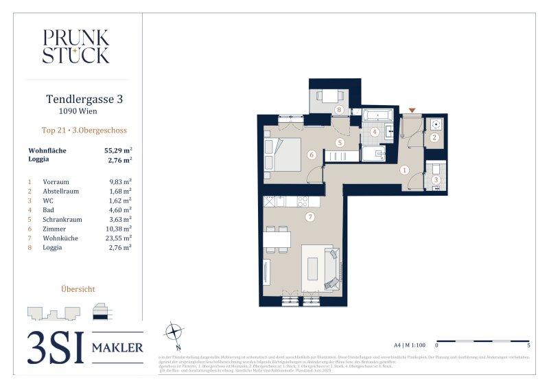 Diese exklusive 2-Zimmer-Wohnung überzeugt durch optimale Raumaufteilung und exklusive Ausstattung. 24 m² Wohnraum, ein geräumiges Schlafzimmer mit Schrankraum und direktem Zugang zum elegantem Bad mit Dusche und Wanne, ein separates WC, ein Vorraum sowie ein Abstellraum komplettieren diese 55m2 Stadtwohnung. Die knapp 3m2 Loggia schafft ein rundum freundliches Wohnambiente Hier ist Platz und Sonne für Pflanzen, die es gerne warm haben, denn die luftige Fensterfront geht Richtung Süden hinaus.