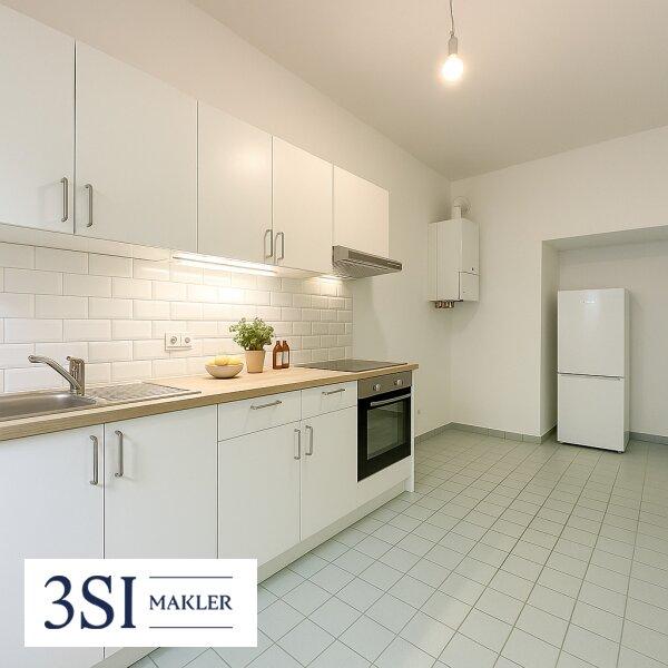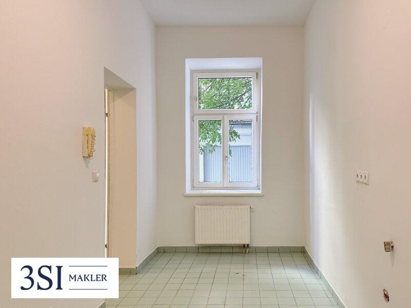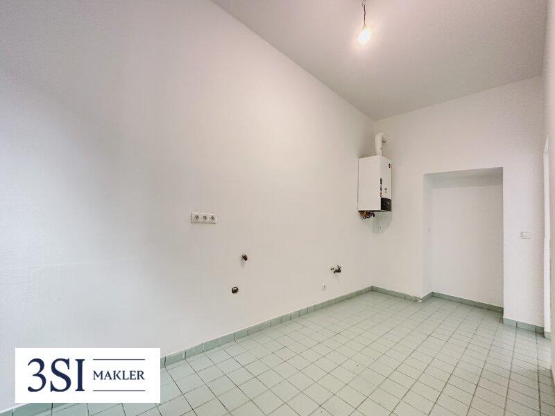 Vom Vorraum der Wohnung aus, gelangt man in das Badezimmer mit Wanne, das separate WC, sowie in den ruhigen Innenhof gelegene Küche, welche Sie nach Ihren einen Wünschen gestalten können.