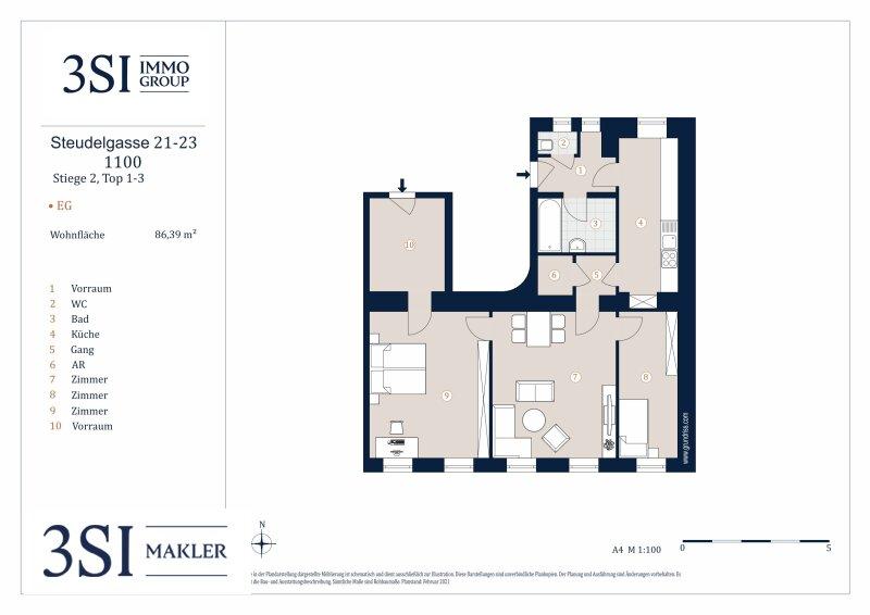 Diese großzügige Erdgeschosseinheit, welche Teils in den ruhigen Innenhof, und Teils westseitig in Richtung der Steudelgasse gelegen ist, bietet anhand Ihres durchdachten Grundrisses, zahlreiche Nutzungsmöglichkeiten.