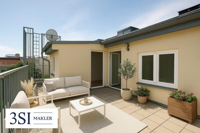 Vom hofseitig ausgerichteten Schlafzimmer, sowie vom Vorraum des oberen Stockwerkes gelangen Sie auf die sonnige, nach Osten ausgerichtete Dachterrasse mit Blick in den ruhigen Innenhof und die Bäume des benachbarten Grundstückes. Der perfekte Ort um gemütlich in privatem Ambiente in den Tag zu Starten, oder ihn mit seinen Liebsten ausklingen zu lassen.