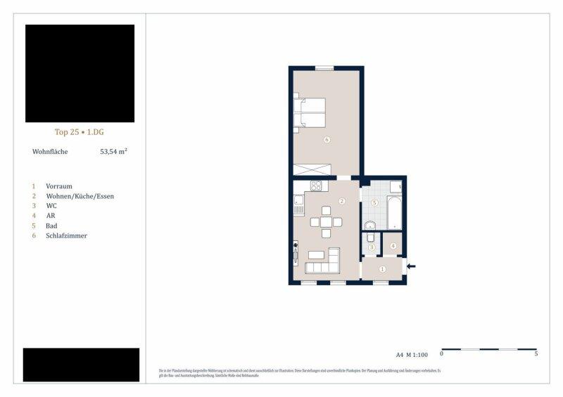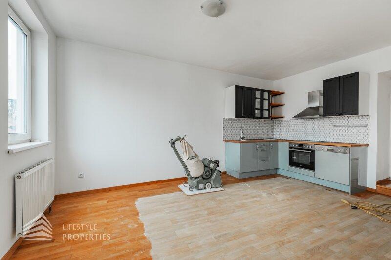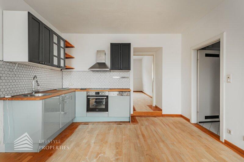 Die entzückende Wohnung mit ca. 56 m² ist ein Erstbezug und befindet sich, bequem über einen Aufzug erreichbar, im 1. DG eines um die Jahrhundertwende errichteten Stilaltbaus in einer gefragten Wohngegend des 4. Wiener Gemeindebezirks. Die elegante Gründerzeitfassade sowie auch sämtliche Allgemeinflächen des Hauses wurden mit viel Liebe zum Detail renoviert. Das Eckzinshaus verfügt über 3 Regelgeschosse und einem ausgebauten Dachgeschoss. Die Wohnung gliedert sich in einen Vorraum, eine Wohnküche, ein Schlafzimmer, ein Bad und ein WC.