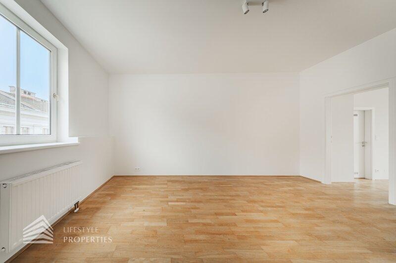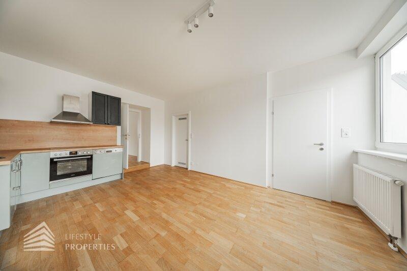 Die entzückende Wohnung mit ca. 56 m² ist ein Erstbezug und befindet sich, bequem über einen Aufzug erreichbar, im 1. DG eines um die Jahrhundertwende errichteten Stilaltbaus in einer gefragten Wohngegend des 4. Wiener Gemeindebezirks. Die elegante Gründerzeitfassade sowie auch sämtliche Allgemeinflächen des Hauses wurden mit viel Liebe zum Detail renoviert. Das Eckzinshaus verfügt über 3 Regelgeschosse und einem ausgebauten Dachgeschoss. Die Wohnung gliedert sich in einen Vorraum, eine Wohnküche, ein Schlafzimmer, ein Bad und ein WC.