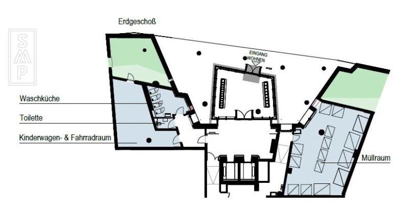 In der Wohnanlage befinden sich ein eigenes Gym mit hochwertigen Trainingsgeräten, ein multifunktioneller Gemeinschaftsraum mit Küche, ein Gemeinschaftsgarten mit Trainings-Outdoorbereich, eine Paketabholstation mit Rücksendeoption im Eingangsbereich, ein Hundewaschplatz und ein digitaler Concierge-Service. Im EG befinden sich die Waschküche, der Kinderwagen- und Fahrradraum und der Müllraum und im 1 UG befindet sich das 3,75m² große Kellerabteil.