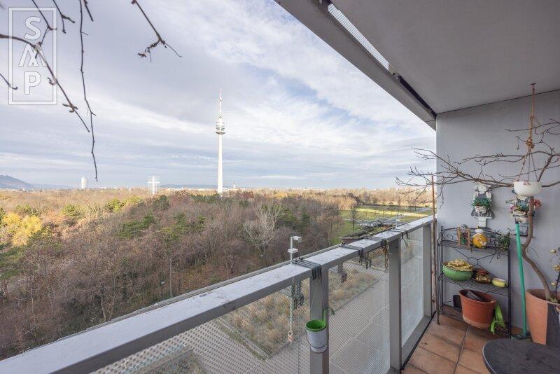 Die im 4 Liftstock gelegene Wohnung befindet sich in einem der bekanntesten und modernsten Wohn- und Geschäftstürme Wiens dem Mischek Tower. Das Gebäude ist bekannt für seine hochwertige Bauweise, die gepflegten Gemeinschaftsflächen und natürlich für den fantastischen Ausblick.