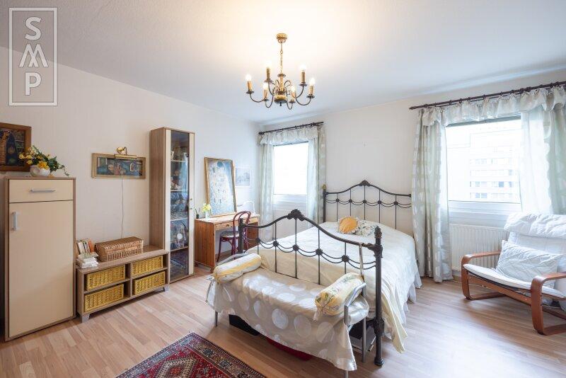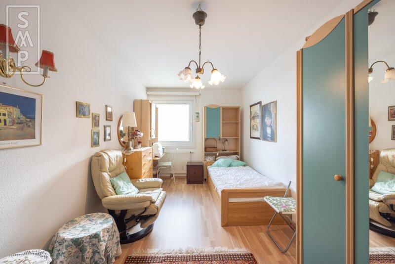 - Schlafzimmer: Das ruhige und besonders große Schlafzimmer wurde aus 2 Zimmern zusammengelegt und bietet genug Raum für ein Doppelbett sowie Stauraum.