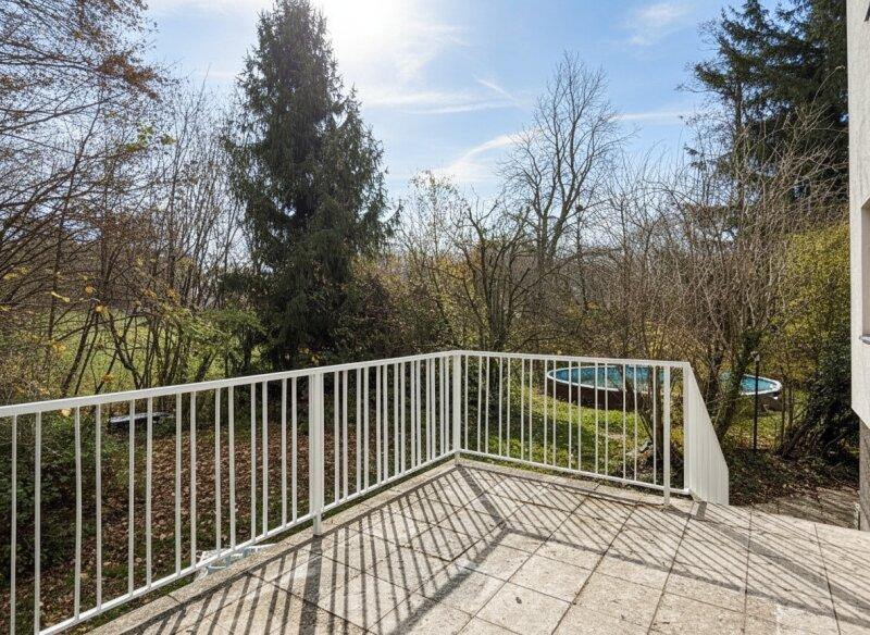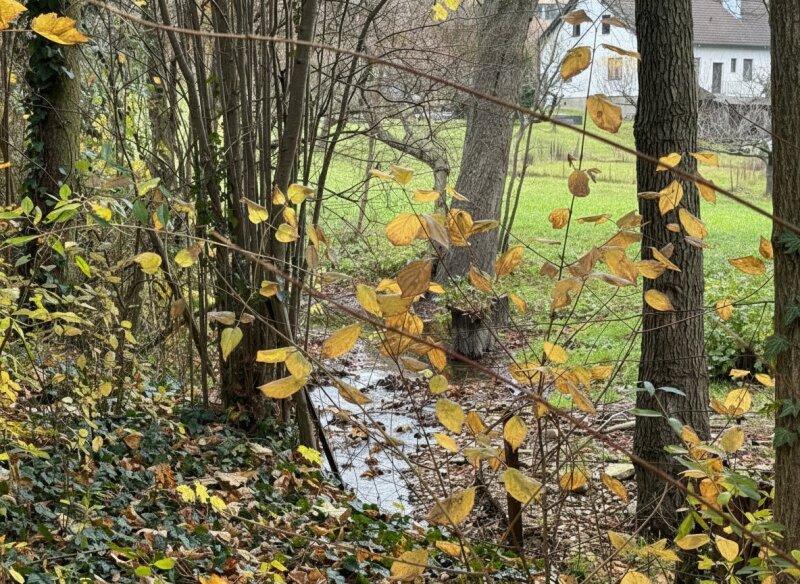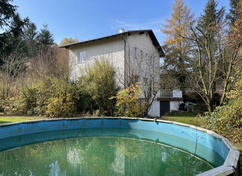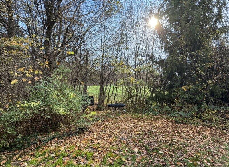 Das 952 m² große Grundstück zeigt sich nicht geschniegelt, sondern wildromantisch. Der Garten darf wachsen, sich entfalten und ein bisschen seinen eigenen Kopf haben. Er grenzt an ein kleines Bächlein und bietet viel Platz für alle, die Natur lieber lebendig als perfekt gestutzt mögen. Ein Pool und ein Gewächshaus sind vorhanden Zeichen dafür, dass hier immer schon gern draußen gelebt wurde.