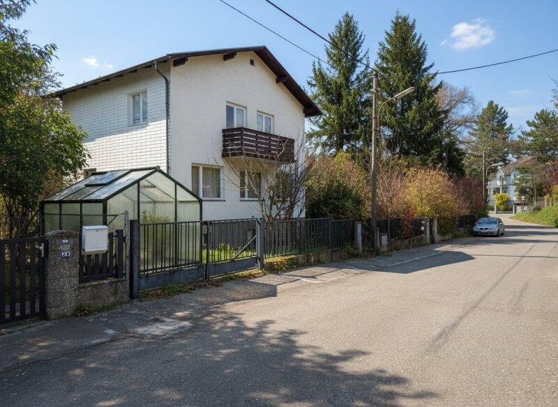 In einer ruhigen Sackgasse, am Ende von Klosterneuburg Kierling, unweit der Eliteuniversität IST-Austria, liegt dieses Haus auf einem Pachtgrund des Stifts Klosterneuburg. Die Umgebung ist angenehm zurückgezogen, grün und still ein Ort, an dem man bewusst wohnt und nicht zufällig vorbeikommt.